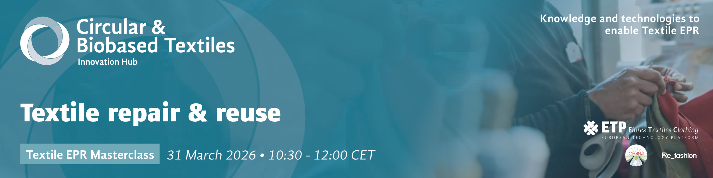 Together with STFI (DE), RISE (SE), Centexbel (BE), Centrocot (IT), and CETI (FR), the Textile ETP launched the Circular & Biobased Textiles Innovation Hub to help textile companies, research organisations, brands and retailers to learn, network and collaborate on the hot topics of circular and biobased textiles.