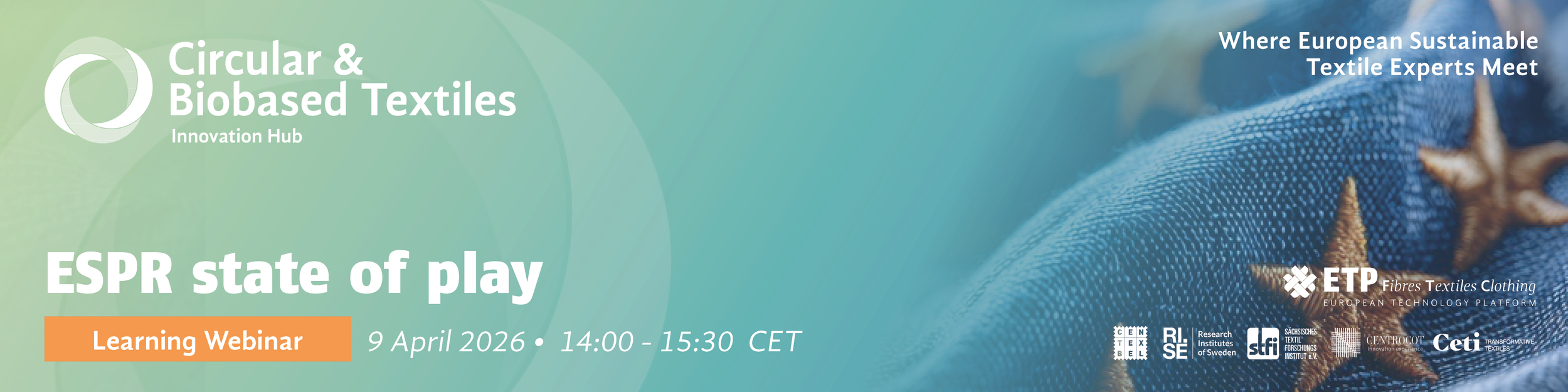 Together with STFI (DE), RISE (SE), Centexbel (BE), Centrocot (IT), and CETI (FR), the Textile ETP launched the Circular & Biobased Textiles Innovation Hub to help textile companies, research organisations, brands and retailers to learn, network and collaborate on the hot topics of circular and biobased textiles.