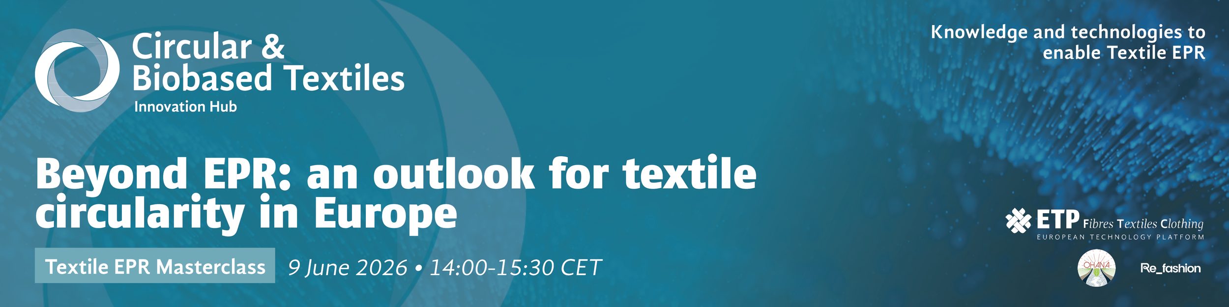 This event is open to Circular & Biobased Textiles Innovation Hub members and Textile EPR Masterclass subscribers only. Interested in joining? Get in touch to find out more, or subscribe directly below.