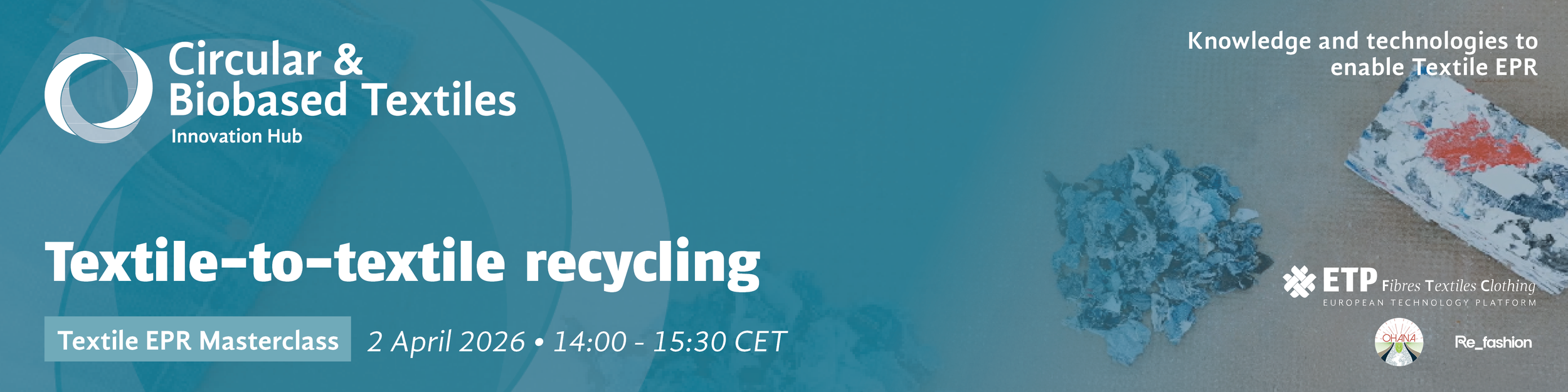 Together with STFI (DE), RISE (SE), Centexbel (BE), Centrocot (IT), and CETI (FR), the Textile ETP launched the Circular & Biobased Textiles Innovation Hub to help textile companies, research organisations, brands and retailers to learn, network and collaborate on the hot topics of circular and biobased textiles.
