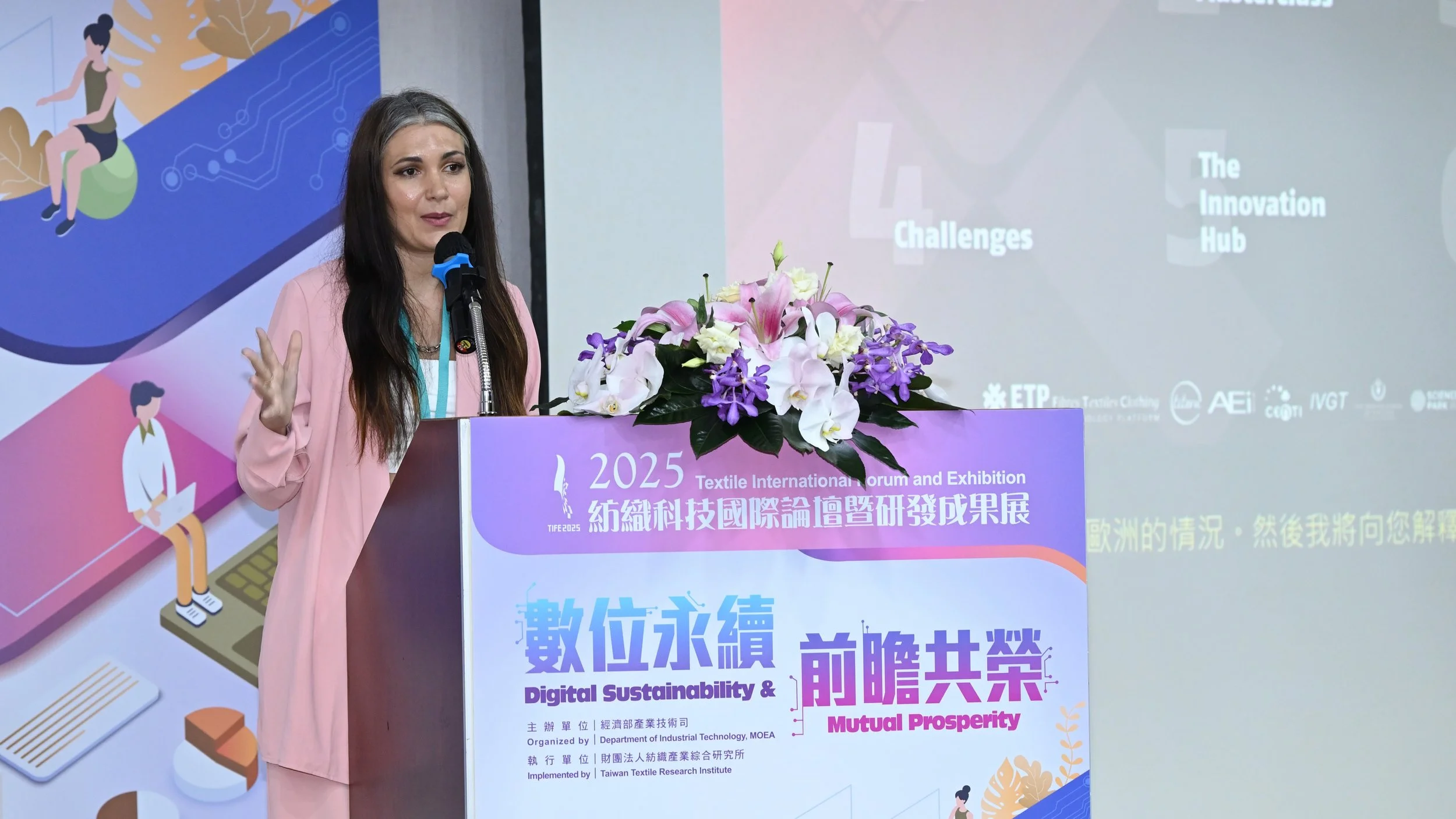 Judith also took the stage at the Taiwan Textile Research Institute (TTRI) Conference, held as part of the Textile International Forum and Exhibition (TIFE) 2025 in Taipei. Her presentation, titled “Bridging Innovation: The Role of the ETP and the Smartex Innovation Hub in Advancing High-Performance Textiles for the Smart World,” focused on the importance of cross-sectoral collaboration between research centers, industries, and startups to accelerate innovation in technical and high-performance textiles. She also introduced the Smartx Innovation Hub, our European platform connecting stakeholders dedicated to innovate in the area of high-performance and technical textiles. The session included valuable contributions from other international speakers and co-host of the SmartX Innovation Hub, Daniela Zavec, who shared insights on technical textiles and the challenges facing the global industry.